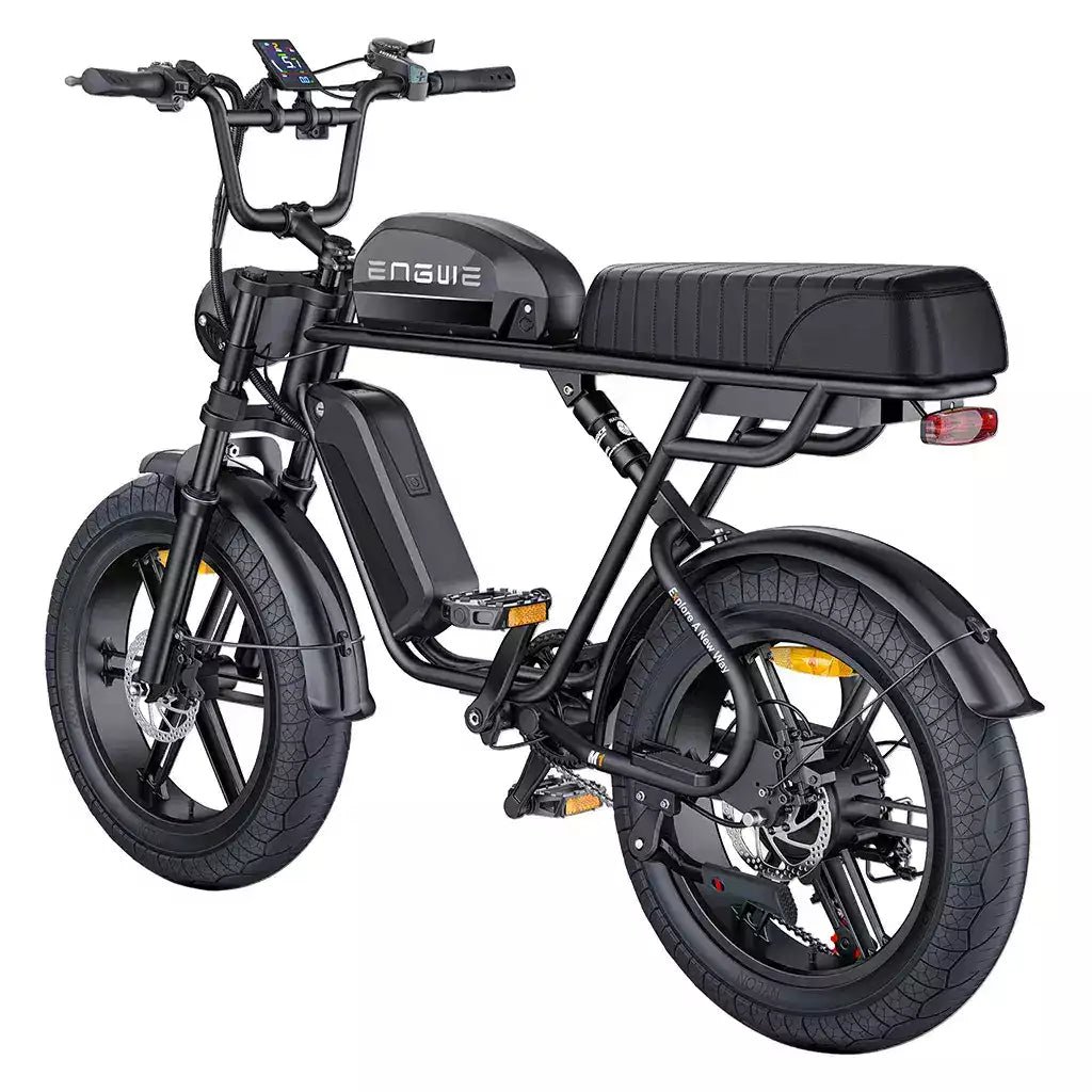 Enfin, l’ENGWE M1 est doté d’un siège double spacieux conçu pour accueillir confortablement deux pilotes. Sa conception ergonomique assure une conduite en douceur pour le conducteur et le passager, tandis que sa construction robuste assure la stabilité. Ce siège double est parfait pour les trajets partagés, que ce soit pour les déplacements quotidiens ou les promenades récréatives, offrant une solution confortable et de soutien pour les longs trajets.