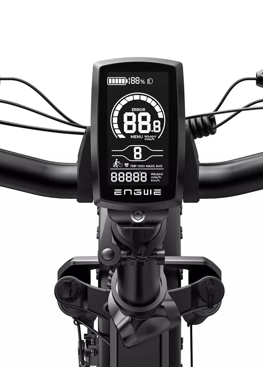 - Écran LCD avancé affichant toutes les informations de base telles que la vitesse, le mode, le niveau de la batterie, la distance et les paramètres.
